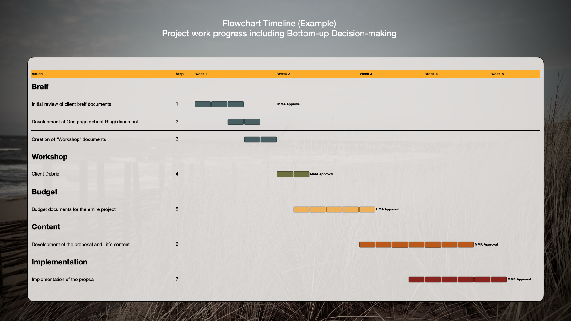 Project work progress "Flowchart" including Bottom-up Decision-making.